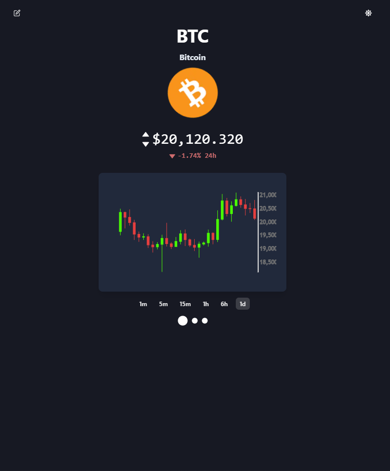A minimalistic price ticker for crypto currencies. Quickly check current and recent info of your favorite cryptos with a clean and simple interface. Uses the Coinbase API.