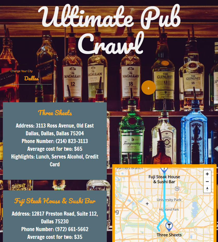 An app that plans a night out for you when you just can't decide! Just choose your city, then a random list of bars and restaurants will be automatically routed. Allows customization of the type of establishments you would like to visit.